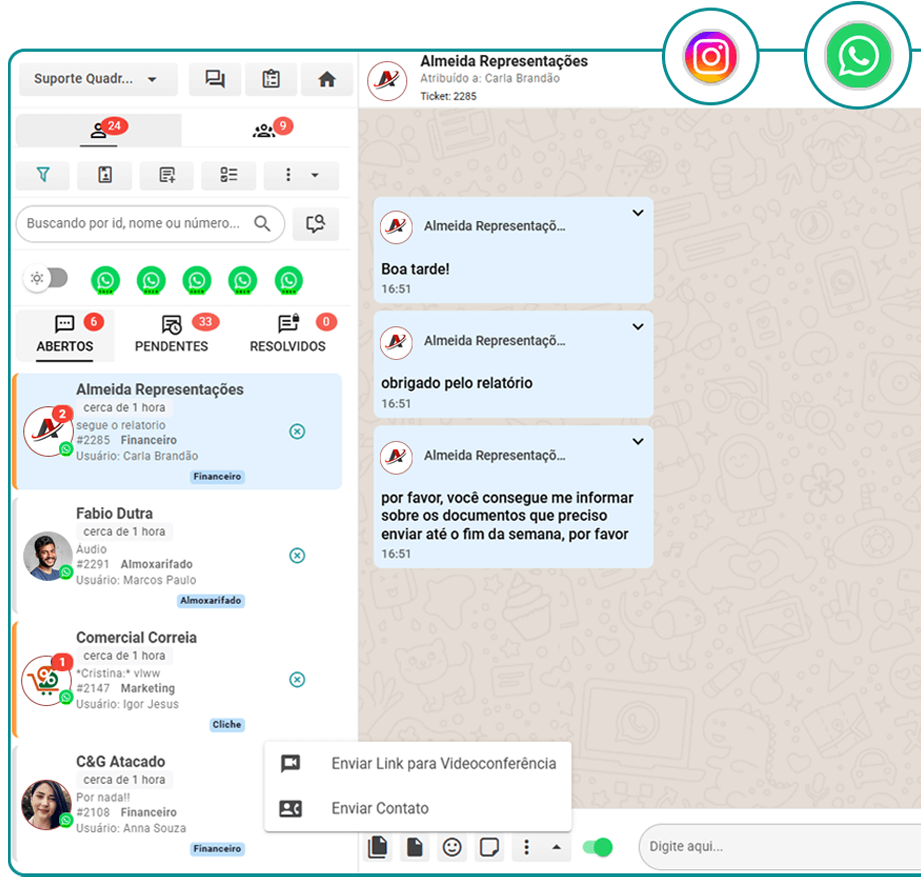 Tenha visibilidade de toda a sua operação, supervisione seus atendentes e equipes, integrando os seus canais de comunicação.
